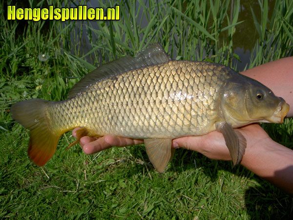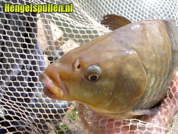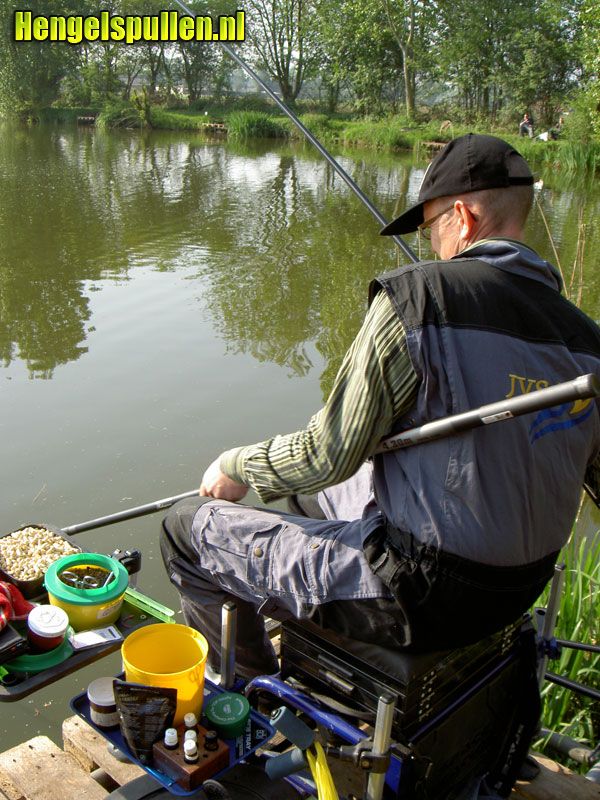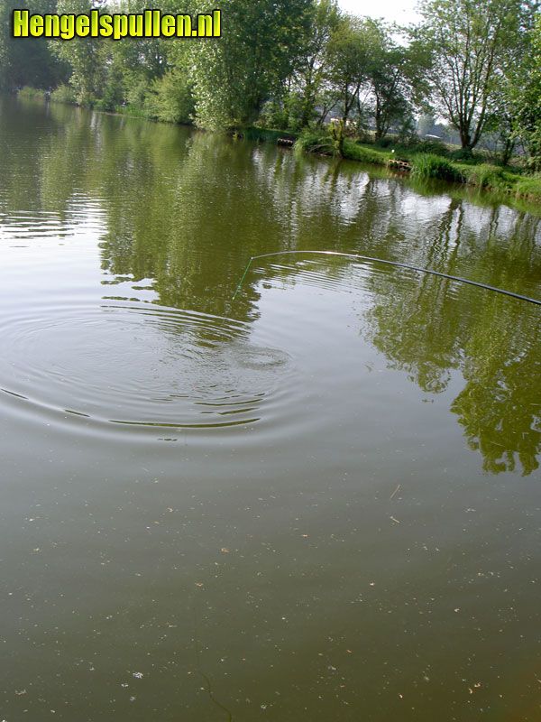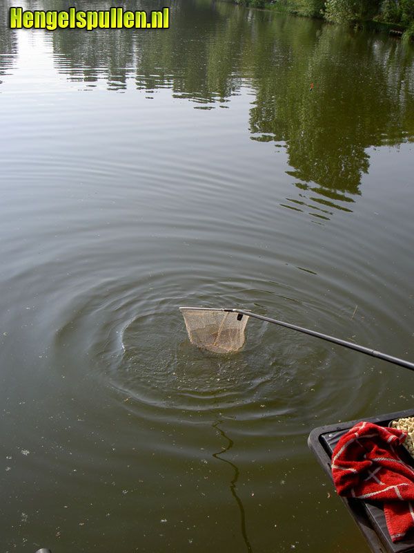 Na een aantal tuigjes te hebben gemaakt ( 3 “inline”en 3 “normaal”), was het zover. Met een blikje zoete maïs, een blikje erwten (moet u ook eens proberen!) en wat pellets vertrok ik richting Nijnsel. Het water lag als een spiegel zo glad. Tijdens het opbouwen van mijn kist werd ik verrast door een pracht karper welke zo halverwege de vijver voor meer dan de helft uit het water kwam. Je rook ze gewoon die biggen, tjonge wat had ik er zin in.