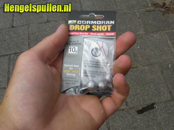 Vanaf deze vakantie heb ik de dropshottechniek ook in Nederland toegepast. Het is makkelijker dan verticalen en ik heb het gevoel dat het ook meer vis oplevert. Ook Hans Koopman boekt tegenwoordig mooie resultaten met dropshotten op het NK Snoekbaarsvissen. Het maken van een dropshotrig is eenvoudig. Een dropshotrig bestaat uit een stuk fluorocarbon (ongeveer een meter), een dropshothaak, een (dropshot)loodje en een shadje naar keuze. De haak zit door middel van de dropshotknoop (zie: dropshotknoop door Willem Stolk) aan de lijn bevestigd. Er wordt gebruik gemaakt van fluorocarbon omdat dit type lijn slijtvast is en onzichtbaar onder water. De dikte ligt tussen de 0.20mm en 0.30mm, afhankelijk van het type water waar je gaat vissen. Het dropshotmateriaal waarmee Cormoran op de markt komt, is volledig toegespitst op de Nederlandse visserij. De haken zijn de juiste grootte en lekker scherp en het lood is bedrukt met het gewicht. Hierdoor weet je altijd welk gewicht je in handen hebt of aan je lijn hebt hangen. Cormoran komt met een ronde en een langwerpige cylinder varriant. Beiden zijn verkrijgbaar in 5, 7, 10,15 en 20 gram. Het voordeel van de langwerpige variant is dat je minder snel vast zit aan een rotsachtige bodem. Voor de sportvissers met weinig tijd of met twee linkerhanden zijn er speciale kant en klare rigs.