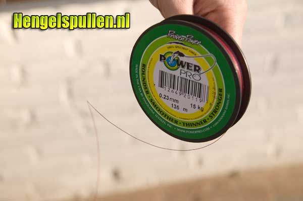 Zoals op de foto te zien is rolt de lijn tegen de klok in van de spoel.