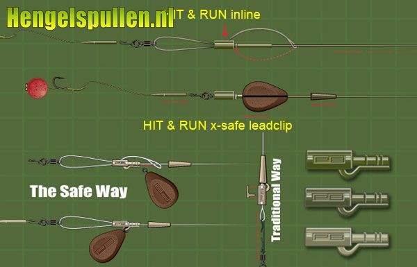 Het Hit & Run Wartel Loodsysteem behoort daarmee tot 1 van de veiligste loodsystemen ter wereld. De Hit & Run X-Safe Loodclip is te gebruiken met iedere type wartellood en met vrijwel ieder type leader. Daarnaast wordt een extra rekje met pinnetjes bijgeleverd waardoor het mogelijk is om de Hit & Run X-Safe Loodclip op de traditionele manier te gebruiken. Bijvoorbeeld in uitzonderlijke gevallen waarbij loodverlies gewenst is, zoals wateren met extreme wiergroei.